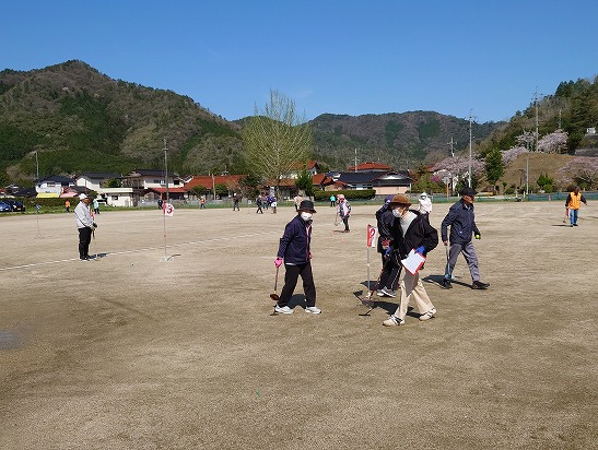 | 4月10日(水)に長野グラウンドにおいて「春季グラウンドゴルフ交流大会」を開催しました。 雨で1日順延しての大会でしたが、みなさんすごく楽しんでおられました。始まってすぐに数名の方がホールインワンを出されていました。 |