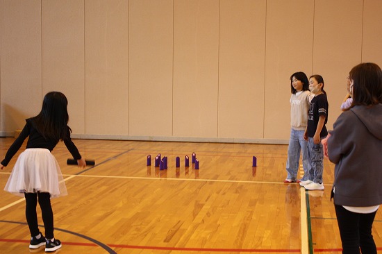 | 久しぶりに恒例のスポーツである屋内モルック・カローリング・ボッチャを行いました。お子さんの参加が多かったですが、皆さん一生懸命頑張っていました。