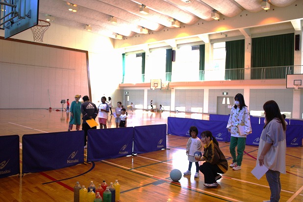 | 美和農林業者トレーニングセンターにおいて「親子であそべるB&Gチャレンジ」が行われました。 |