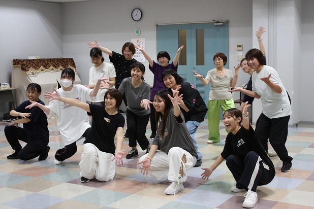 | 6月8日(土)にハーモニーみわにおいて「大人のHIPHOPダンス体験教室②」が開催されました。 まずは、ストレッチやボクササイズでしっかり身体をほぐしてからスタートです。 前回とは違う振り付けを教えていただき、笑顔の絶えない楽しい教室となりました。次回は秋の開催予定です。 |
