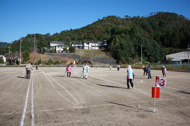 | 雨のため順延しましたが、大会当日は半袖になりたいぐらいの秋晴れとなりました ※グラウンドゴルフは、週4回活動されています |