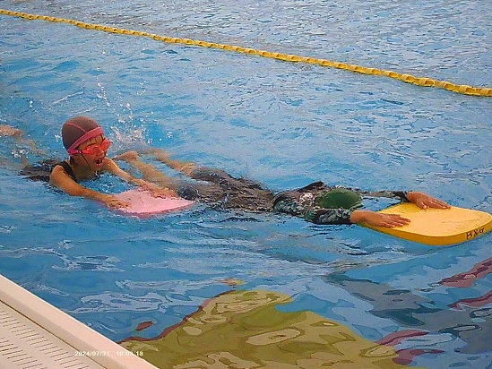 | 7月29日~8月9日にB&G海洋センタープールにおいて、水泳教室が開催されました。 計44名の元気な子供たちが参加してくれました。 最初は25m泳げなかった子も、毎日練習を重ねて最終日には泳げるようになりました。 諦めない気持ち、努力する姿勢、とても素晴らしかったです。 |