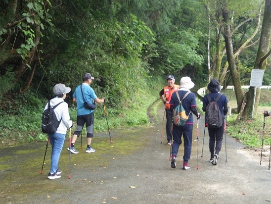 | 8月21日(水)にノルディックウォーキング歩き方教室が開催されました。 ウォーキング協会の方のご指導のもと、綺麗に整備された「生見川湖道」を歩きました。 |