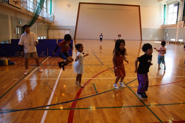 | 毎年好評の体験教室を今年も開催しました。雨が降り体育館で行いましたが、元気いっぱい走りました。 陸上の小川コーチ、サッカーの村田コーチ、ありがとうございました。 |
